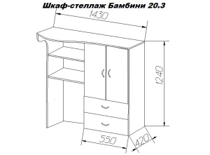 • Габариты шкафа-стеллажа: 1430х1240х420 мм.