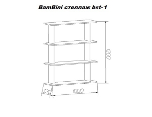 Стеллаж Бамбини Bst-1 – Уютная мебель комната для детей от 2-3 лет и подростковую спальню. Купить стильный детский гарнитур с индивидуальным дизайном — серия модульной подростковой мебели Бамбини. Стеллаж включает в себя три полки для хранения различных предметов. Детская мебель модель выполнена из европейского экологически чистого ЛДСП толщиной 16 мм, лицевые кромки покрыты ПВХ толщиной 2 мм.