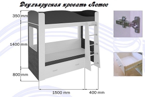 Опасные радиусные детали декорированы специальным противоударным кантом и ПВХ толщиной 2 мм. Кровать выпускается из экологически чистого ЛДСП австрийского производства.