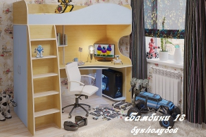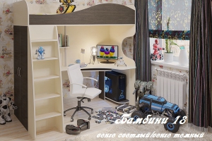 Детская мебель кровать-чердак Бамбини Bkc— это многофункциональный комплект детской мебели. Данная модель выполнена из европейского экологически чистого ЛДСП, все лицевые и опасные радиусные кромки покрыты ПВХ толщиной 2 мм.