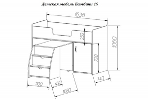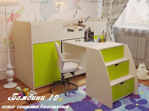 Детская мебель кровать-чердак Бамбини Bkc— это многофункциональный комплект детской мебели. Данная модель выполнена из европейского экологически чистого ЛДСП, все лицевые и опасные радиусные кромки покрыты ПВХ толщиной 2 мм.