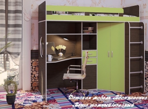 Детская мебель кровать-чердак Бамбини Bkc— это многофункциональный комплект детской мебели. Данная модель выполнена из европейского экологически чистого ЛДСП, все лицевые и опасные радиусные кромки покрыты ПВХ толщиной 2 мм.
