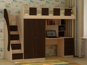 •Комплект универсальный, расположение шкафа, стола и лестницы можно выбрать при сборке.
