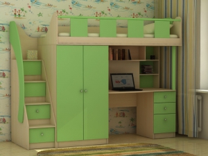 •Комплект универсальный, расположение шкафа, стола и лестницы можно выбрать при сборке.