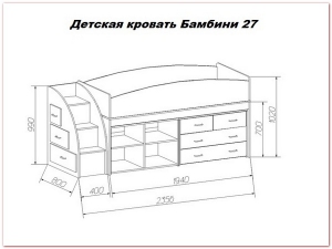 Детская мебель кровать-чердак Бамбини Bkc— это многофункциональный комплект детской мебели. Данная модель выполнена из европейского экологически чистого ЛДСП, все лицевые и опасные радиусные кромки покрыты ПВХ толщиной 2 мм.