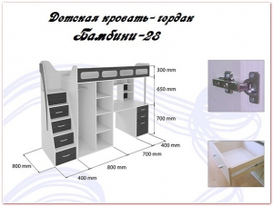 Творческий подход к дизайну кровати-чердака «Бамбини 28», с её светлыми красками и пастельными полутонами, сделает привлекательным любой интерьер. Красивые, рельефные формы заострят внимание и больших и маленьких.