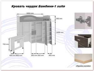 Детская мебель кровать-чердак Бамбини Bkc— это многофункциональный комплект детской мебели. Данная модель выполнена из европейского экологически чистого ЛДСП, все лицевые и опасные радиусные кромки покрыты ПВХ толщиной 2 мм.