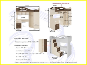 Опасные радиусные детали декорированы специальным противоударным кантом и ПВХ толщиной 2 мм. Кровать выпускается из экологически чистого ЛДСП австрийского производства.