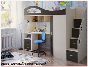 Детская мебель кровать-чердак Бамбини Bkc— это многофункциональный комплект детской мебели. Данная модель выполнена из европейского экологически чистого ЛДСП, все лицевые и опасные радиусные кромки покрыты ПВХ толщиной 2 мм.