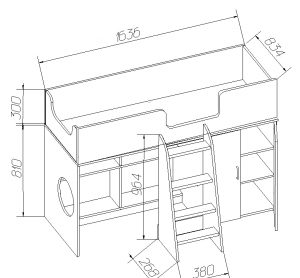 •кровать-чердак Мини с бортиками (Дл1640хГл840хВ1110мм);
