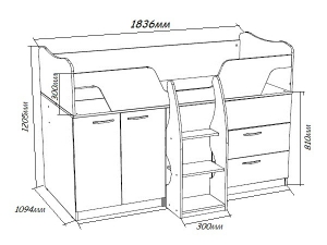 • Габаритные размеры: высота 1205мм, глубина 1094мм, ширина 1836мм;