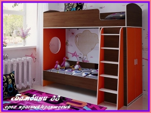Балкон выступает в качестве игрового элемента детской комнаты, имеет перила, выполненные из металлических труб. Опасные радиусные детали декорированы специальным противоударным кантом и ПВХ толщиной 2 мм.