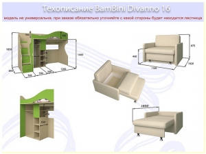 • Спальное место кровати чердака 800х2000мм, дивана 800х1600мм;