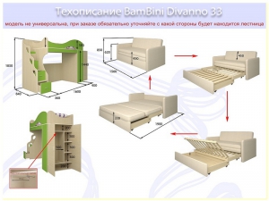 Практически под любой интерьер детской комнаты подойдет двухъярусная кровать с диваном «Divanno-33», так как дизайнеры создают разработки с учетом последних модных новинок.