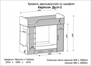 Детская двухъярусная кровать Карлсон со шкафом