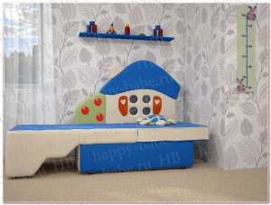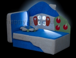 Детский диван Домик Зимний — Уютный и красочный детский диванчик с окошком и декоративной подушечкой.
