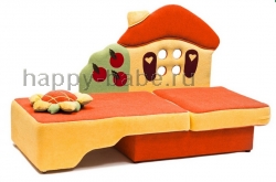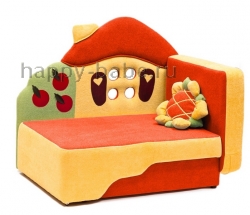 Детский диван Солнечный Домик — Уютный и красочный детский диванчик с окошком и декоративной подушкой.