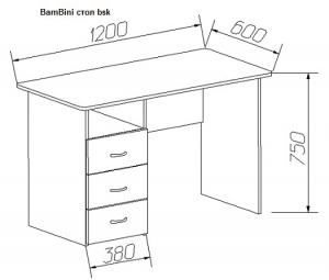 Стол компьютерный Bambini Bsk – это удобный стол для занятий в детскую комнату. Cтол включает в себя три ящика и свободную нишу для хранения предметов. Данная модель выполнена из европейского экологически чистого ЛДСП, кромки покрыты ПВХ толщиной 0,4 мм. Отсутствие острых углов обеспечивает безопасность детей.