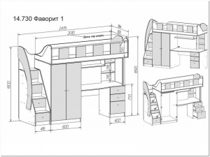 •Комплект универсальный, расположение шкафа, стола и лестницы можно выбрать при сборке.