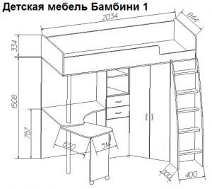 Кровать чердак Бамбини bkc-26 — Современная детская кровать для детей от 2-3 лет из серии детской модульной мебели Бамбини. Детская мебель выполнена из европейского экологически чистого ЛДСП, все лицевые кромки покрыты ПВХ толщиной 2 мм.