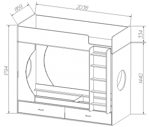 Габаритные размеры : Ш2036хГл 868 /1068(с учетом размеров лестницы) хВ1794мм.