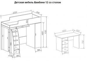 Кровать чердак для школьника Бамбини bkc-21 — Стильная детская кровать чердак с рабочей зоной для детей от 3-5 лет и подростков. Отличный дизайн детской мебели и разнообразие цветовых решений позволяет оборудовать детскую комнату для девочки и мальчика подростка и школьника. Так же можно оставить место под игровую зону. Данная модель выполнена из европейского экологически чистого ЛДСП, все лицевые кромки покрыты ПВХ толщиной 2 мм, а опасные и радиусные кромки противоударным кантом.