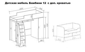 Детская мебель кровать-чердак Бамбини Bkc— это многофункциональный комплект детской мебели. Данная модель выполнена из европейского экологически чистого ЛДСП, все лицевые и опасные радиусные кромки покрыты ПВХ толщиной 2 мм.