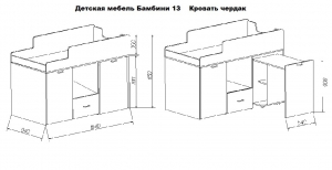 Кровать чердак Бамбини bkc-26 — Современная детская кровать для детей от 2-3 лет из серии детской модульной мебели Бамбини. Детская мебель выполнена из европейского экологически чистого ЛДСП, все лицевые кромки покрыты ПВХ толщиной 2 мм.