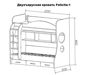 • Спальное место: верхнее — 2000х800;нижнее – 2000х900.