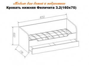 Кровать нижняя Феличита 3.2(160х70) — Современная детская модульная мебель для детской комнаты и подростков.