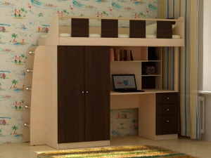•Комплект универсальный, расположение шкафа, стола и лестницы можно выбрать при сборке.
