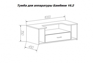 Тумба для игровой приставки Бамбини 16.2 — Модульная детская мебель в комнату для детей и подростков. Тумба включает в себя выдвижной ящик, установленный на шариковых направляющих, два боковых отделения и два верхних отделения, предназначенные для установки теле-, видео- или игровой аппаратуры.